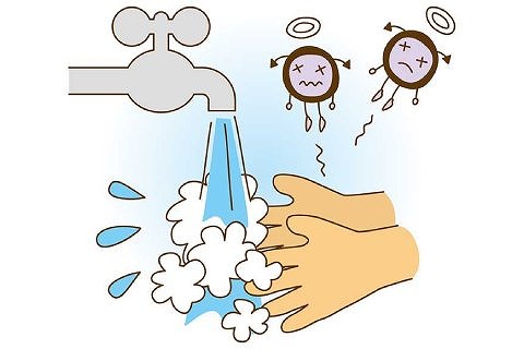 水洗いだけでは細菌は落ちにくいので、よく石鹸で手を洗ってもらってください。