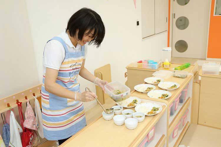 園長:研修の際、やさしく丁寧に的確に教えてもらえたと言っていました。 「こういうふうに教わった」「こういうものが必要です」など、しっかり勉強してくれたので、園の給食室の準備もスムーズに進められ、4月1日の給食も円滑にスタートできました。