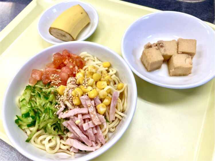 今日の神奈川県の保育園でお出しする給食は「冷やし中華」。長雨がやっと終わったとおもったら、大変な酷暑。本当に暑い日が続いていますので、さっぱりと頂ける冷やし中華は人気の献立です。
