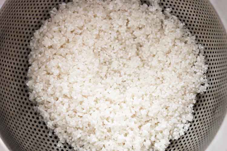 下準備|米は軽く研いで水を切り、ザルにあげる